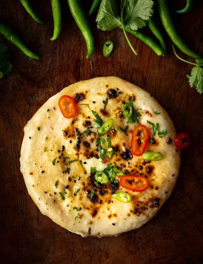 Each bite delivers the perfect balance of creamy, gooey cheese and a bold kick of chili — warm, indulgent, and just the right amount of spicy. The heat of the fresh green chilies is beautifully complemented by the richness of the cheese, making this naan a flavor-packed delight for spice lovers.