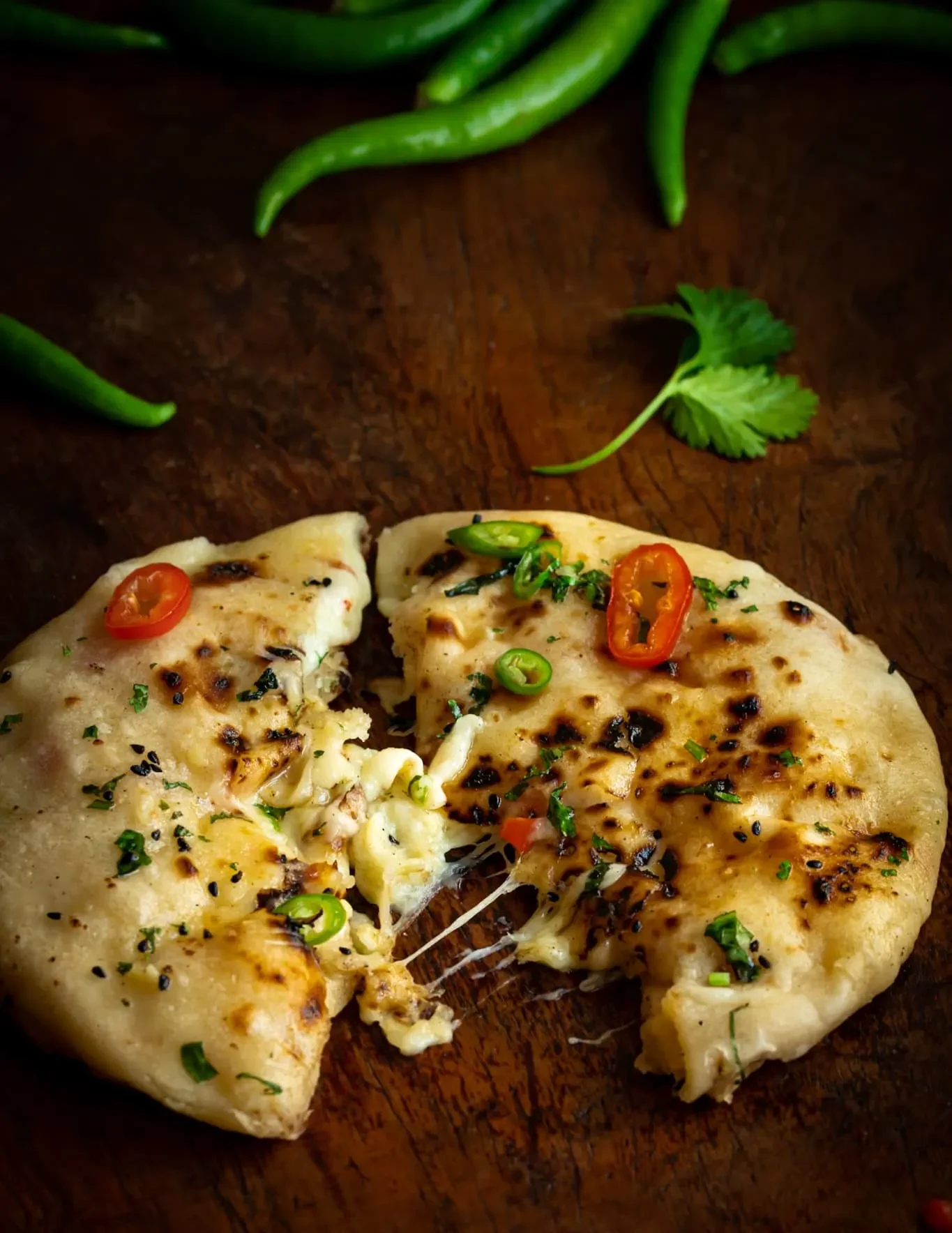 Stuffed Naan with Spicy Cheese & Fresh Green Chili